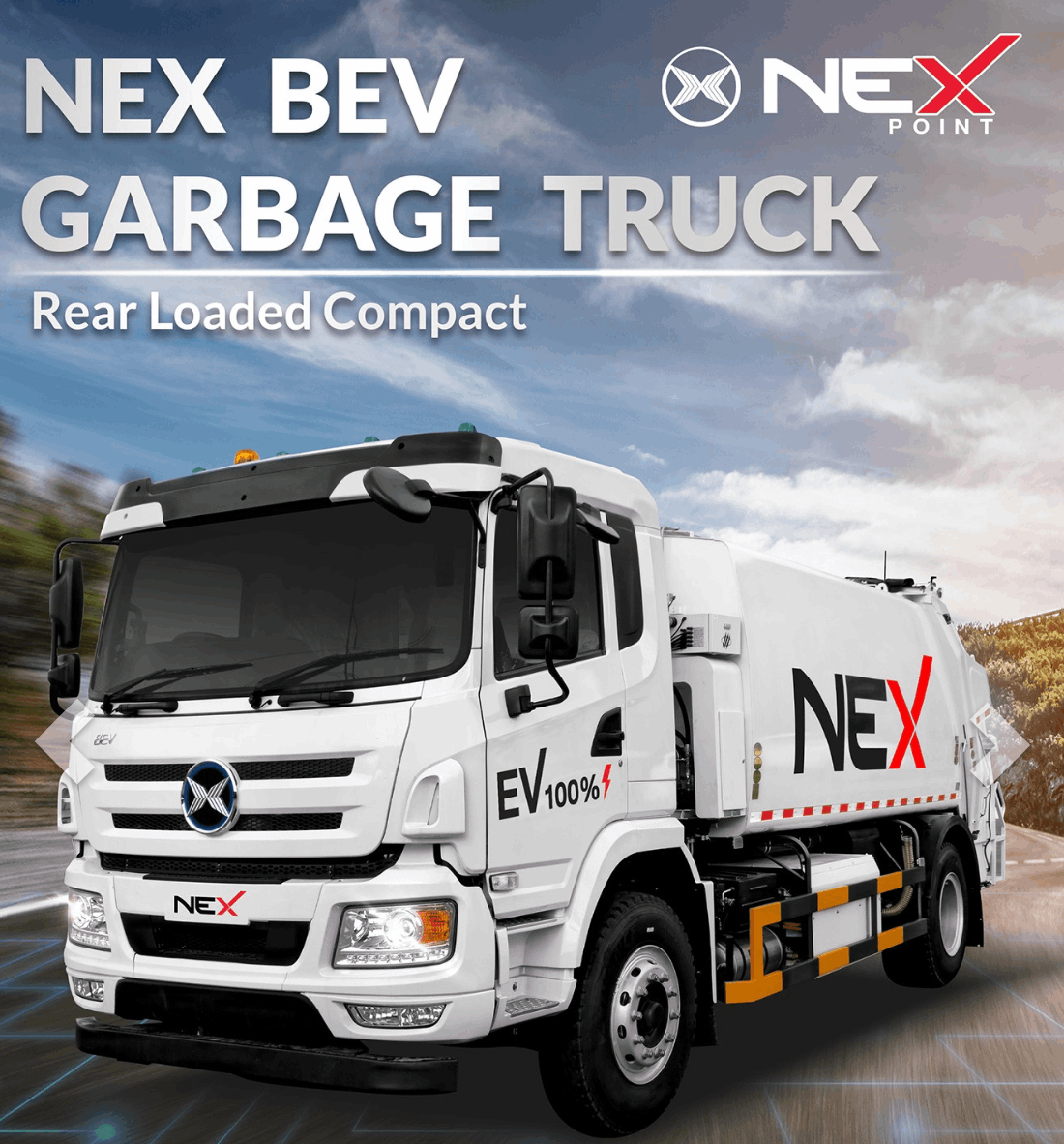 นอกเหนือจาก รถเก็บขยะไฟฟ้า NEX ที่ได้รับความนิยมสำหรับการคมนาคมที่ใสสะอาด ประหยัดค่าใช้จ่าย และเงียบสงบแล้ว NEX ยังขยายไลน์ผลิตภัณฑ์สู่ รถขยะไฟฟ้า ที่ขับเคลื่อนด้วยพลังงานสะอาด 100% และยังให้ความสะดวกสบายผ่านการควบคุมอุณหภูมิภายในห้องโดยสาร เพิ่มความสะดวกสบาย เหมาะกับสภาพอากาศร้อน